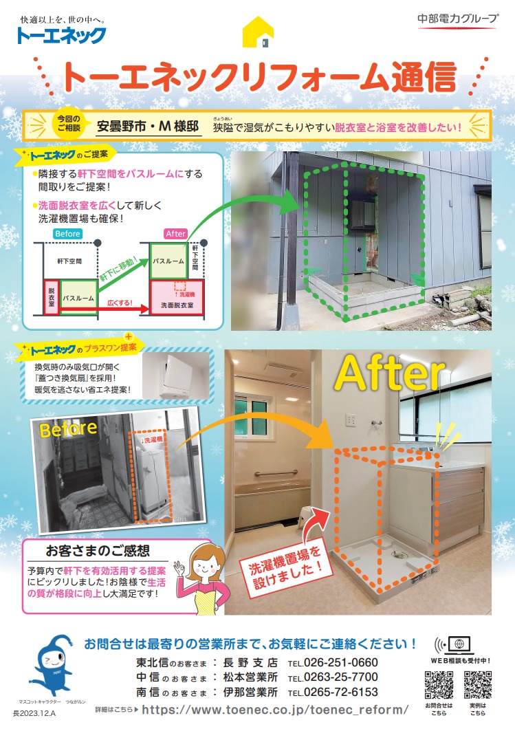 狭くて湿気がこもりやすい脱衣室と浴室を快適にしたい!というご要望に対し、